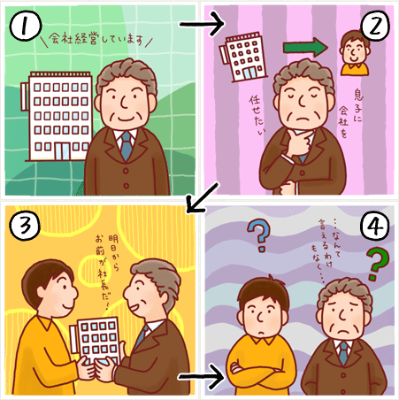 株式会社を経営しているAさんは、遺産相続の準備に取り掛かると同時に、息子のBさんに会社を引き継がせたいと考えています。「明日から、お前が社長だ!」の一言で片付くはずもありません…。