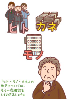 次に、会社の「ヒト・モノ・カネ」の動きと、経営者自身が所有している財産について把握しておく必要があります。「ヒト・モノ・カネ」の動きについては、分かっているつもりでも、もう一度確認をしておきましょう。株主構成を把握しておくことや、株式評価を行っておくことを忘れないようにしましょう。
