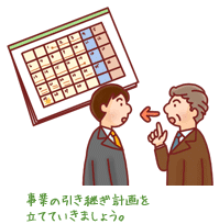 息子に事業を引き継がせると言っても、決意した翌日に経営者が交代するといったことは、余程の非常事態でもない限り、まずあり得ないことです。取引先や従業員への周知も必要ですし、何より、後継者の教育や資産の譲渡などの重要な手続きを行わなければなりません。今後の経営方針や経営目標に沿って、どのタイミングで、何をする必要があるのかを検討し、周到に引き継ぎ計画を立てていきましょう。